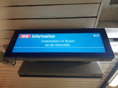 Meine Freunde und ich finden die neuen Anzeigen von den Fotos, die wir gesehen haben, nicht so cool, da wir die Form von den jetzt alten Anzeigen mochten, v. a. weil die ganz alten Faltblattanzeigen, die vor den jetzt alten Anzeigen verwendet wurde die gleiche war. Als ich sie aber mit eigenen Augen gesehen habe, fand ich sie doch gar nicht sooo schlecht.